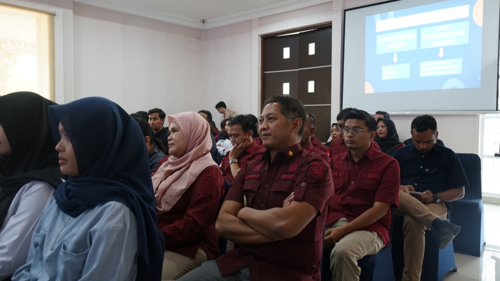 Sesi berikutnya diisi oleh narasumber dari DPMPTSP yang membahas pembaruan perizinan berusaha melalui Online Single Submission Risk Based Approach (OSS-RBA) sesuai PP Nomor 28 Tahun 2025, yang menggantikan PP Nomor 5 Tahun 2021. Materi tersebut mencakup penyempurnaan analisis risiko usaha, perizinan berusaha UMK, serta persyaratan dasar seperti KKPR, persetujuan lingkungan, PBG, dan SLF. Selain itu, peserta juga diperkenalkan pada fitur pembaruan OSS, termasuk mekanisme perubahan data usaha, riwayat perubahan, hingga konsultasi perizinan.