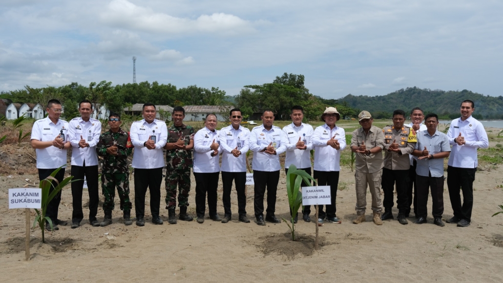 SUKABUMI – Kantor Imigrasi Kelas I Non TPI Karawang turut ambil bagian dalam kegiatan penanaman bibit kelapa serentak yang digelar di Kecamatan Ciemas, Kabupaten Sukabumi, Selasa (9/9). Program ini menjadi salah satu langkah nyata Kementerian Imigrasi dan Pemasyarakatan dalam mendukung upaya peningkatan ketahanan pangan nasional.