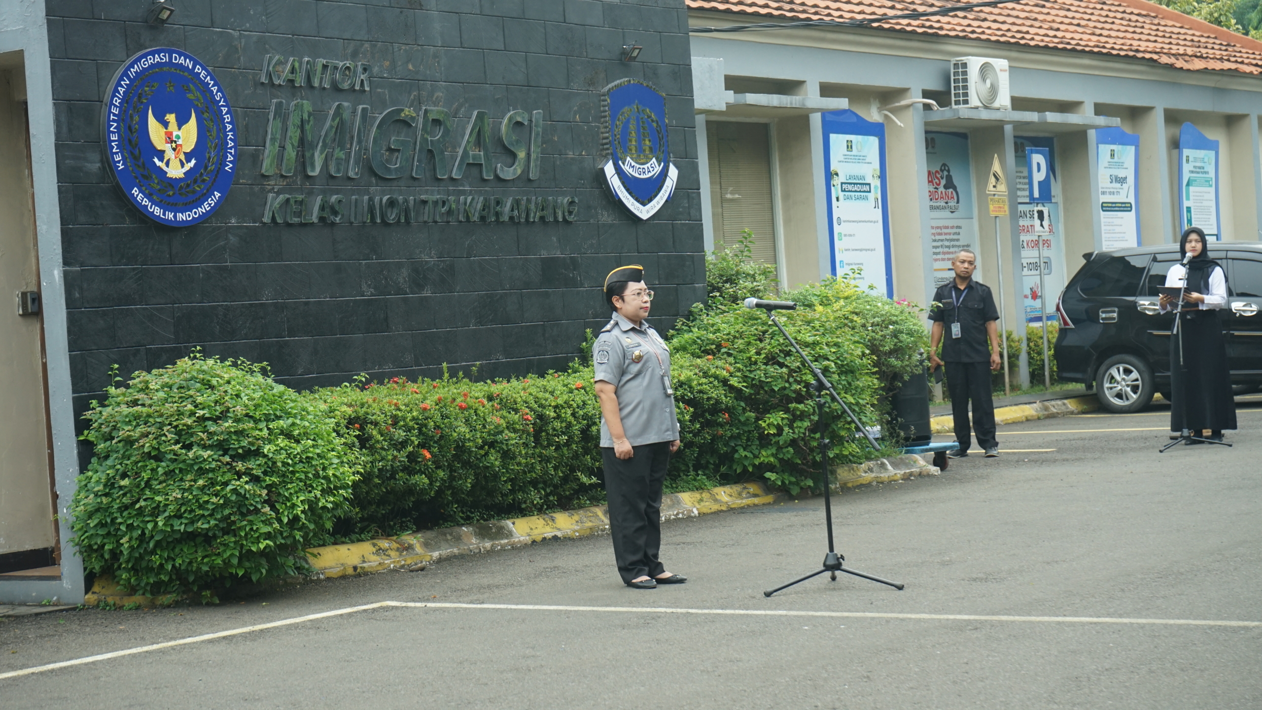 KARAWANG — Mengawali aktivitas di pekan ini, Kantor Imigrasi Kelas I Non TPI Karawang menggelar apel pada Senin (8/12). Kegiatan rutin ini diikuti oleh seluruh pegawai, siswa magang, mahasiswa praktik kerja lapangan (PKL) dan peserta magang nasional.