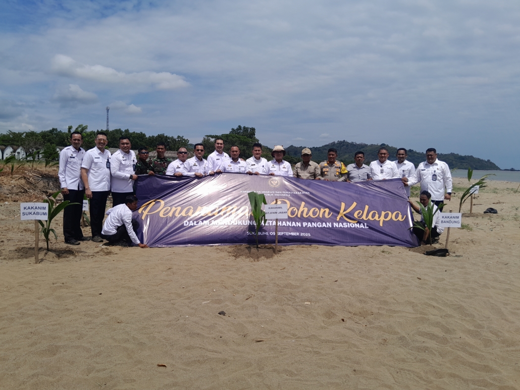SUKABUMI – Kantor Imigrasi Kelas I Non TPI Karawang turut ambil bagian dalam kegiatan penanaman bibit kelapa serentak yang digelar di Kecamatan Ciemas, Kabupaten Sukabumi, Selasa (9/9). Program ini menjadi salah satu langkah nyata Kementerian Imigrasi dan Pemasyarakatan dalam mendukung upaya peningkatan ketahanan pangan nasional.