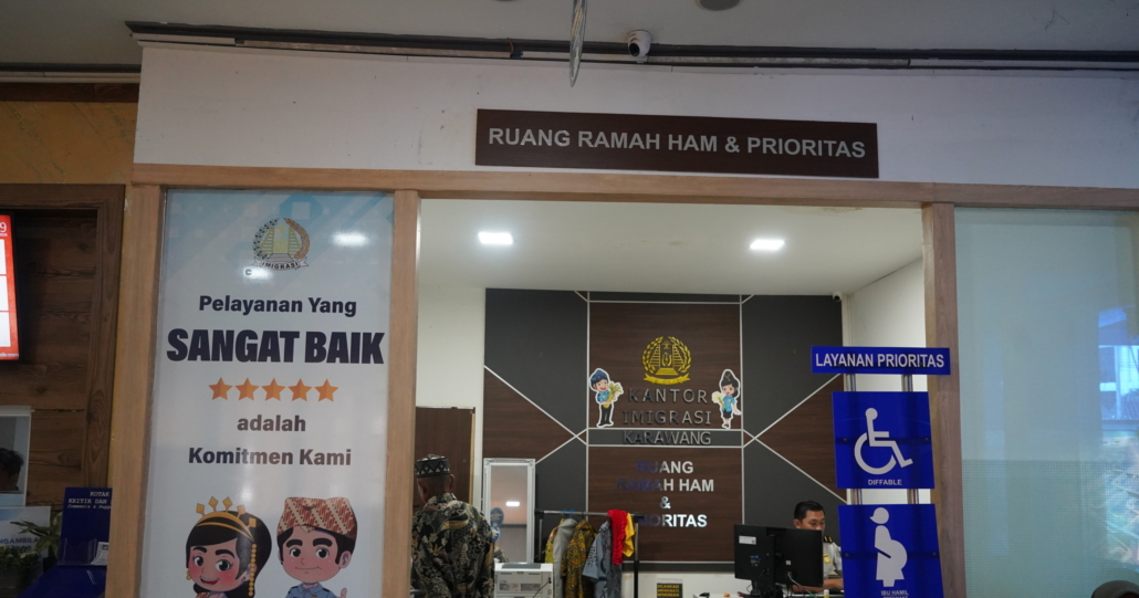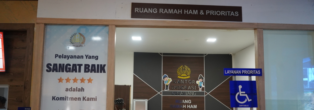 KARAWANG – Kantor Imigrasi Kelas I Non TPI Karawang terus berkomitmen untuk meningkatkan kualitas pelayanan publik melalui penerapan Layanan Prioritas Ramah HAM. Komitmen tersebut diwujudkan dengan penyediaan fasilitas pelayanan yang ramah bagi lanjut usia (lansia) di atas 60 tahun, ibu hamil, balita, dan difabel.