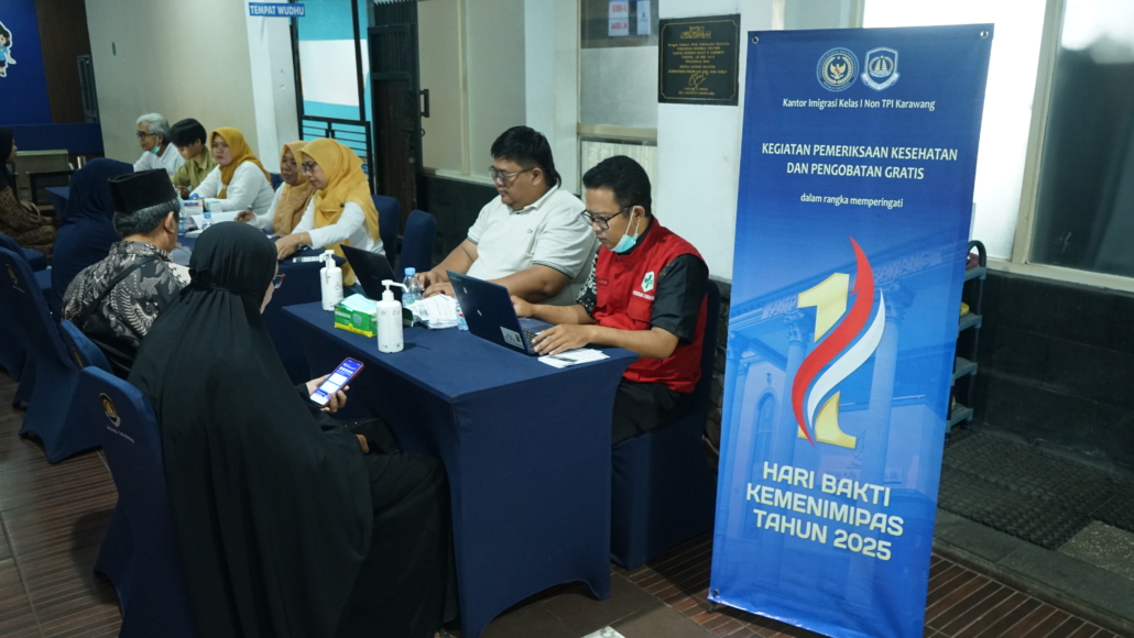 KARAWANG — Kantor Imigrasi Kelas I Non TPI Karawang mengadakan pemeriksaan kesehatan gratis dalam rangka memperingati Hari Bakti Kementerian Imigrasi dan Pemasyarakatan 2025, Selasa (11/11).
